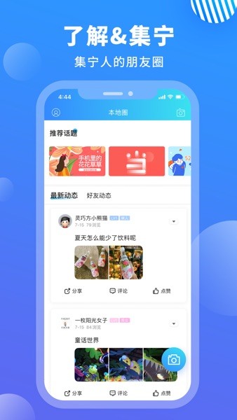 集宁佰事通手机版是专为集宁人打造的社交应用,为您提供一个亲近的朋友圈,让您轻松加入兴趣小组,结识志同道合的朋友,分享生活点滴,感受丰富多彩的人生,赶快下载体验吧!