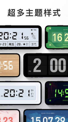 多样化的主题、丰富的时钟样式,拥有更多个性化选择,提供更佳的使用体验。支持自主设置背景图片壁纸、字体颜色、时间翻页动画效果,打造独特的时钟样式。