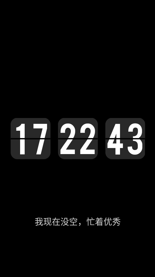 极简设计风格,经典翻页显示,支持横屏及竖屏显示,让你用得更舒适。可设置为手机屏保时间、桌面悬浮时钟小组件,方便查看时间。励志语录显示,用文字的力量加上时间翻页,鼓励自己更快速进入工作学习状态。
