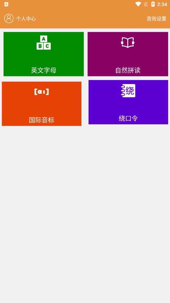 如果你渴望学习英语,大猫英语自然拼读app将成为你的得力助手。它包括英文字母、自然拼读、国际音标、绕口令四个板块的学习内容。英文学习界面涵盖了26个英文字母的学习,自然拼读包含短元音、辅音、长元音、复合字母、字母组合的学习,而国际音标涉及原因和辅音的学习。