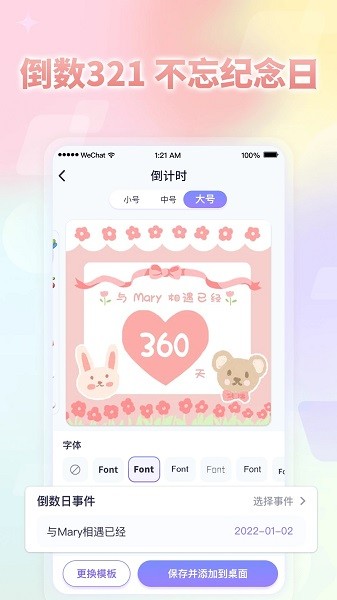 一个帮助您记录重要日子的小工具,例如恋人生日、考试日期、发工资日期、出生纪念日等,甚至距离世界末日还有多少天。让您不再错过任何重要时刻。