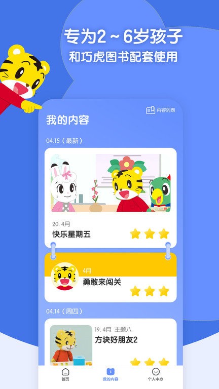 - 快乐星期五:巧虎动画、游戏挑战、益智趣味、生活应用。