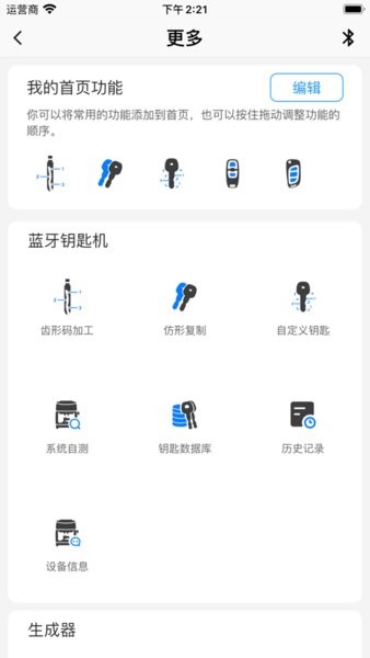 首页集合了钥匙机、生成器、钥匙尺子等多种工具功能,支持个性化编辑调整,满足个人需求。