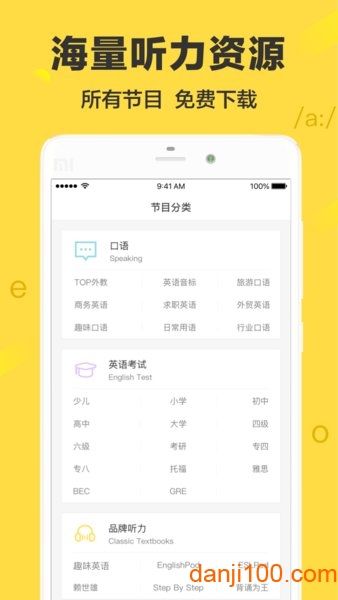 - 覆盖雅思、托福、新概念、VOA、CNN、BBC等各种学习资源,随心所学。