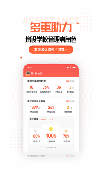 2.搭建在线家长学校,以孩子班级为基础建立家长学习圈,精选了诸多优质课程,并通过家委会监督协助家校协同,教师及校长可随时发布重要信息让家长第一时间了解学校信息。