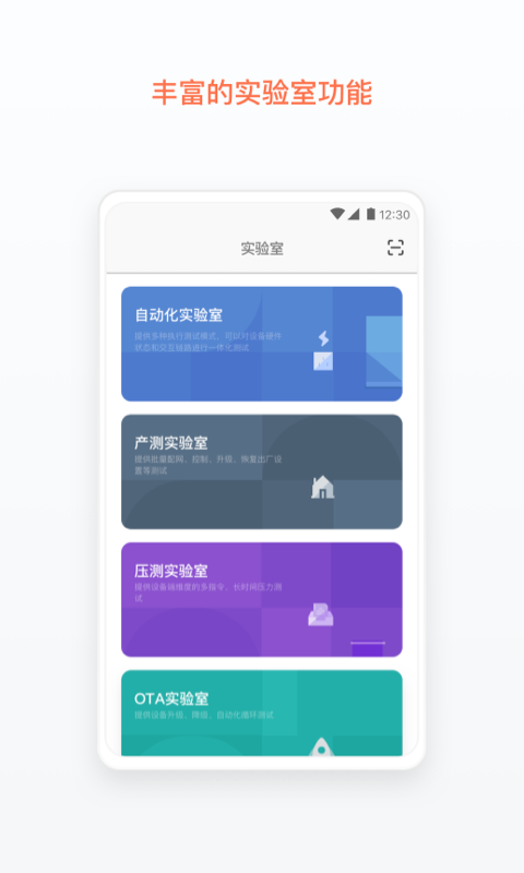 为了帮助开发者快速定位设备问题,涂鸦云测App提供多种测试模式,以功能模块为单位,全面测试设备硬件状态和交互链路。
