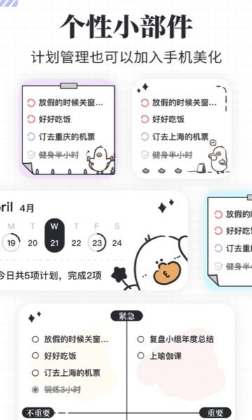 采用手绘风格的小组件,支持多种大小和样式,直观显示计划完成情况。