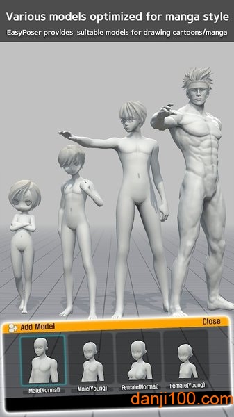 3.漫画风格模型 - EasyPoser提供各种身体比例的模型,与其他应用中的过于现实的模型不同,更适用于动画、网络漫画或游戏插图。