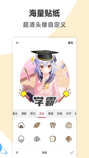 - 快速编辑:流程化编辑,一键保存,可自定义贴纸。