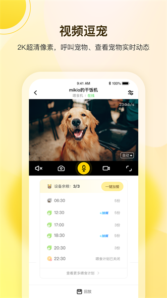 【智能喂食】远程一键投喂宠物干粮,制定喂食计划,健康合理喂食。