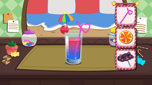 - 2. 自由收集食材,制作喜欢的果汁等美食。