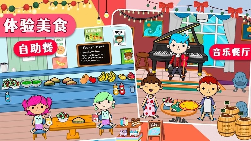 - 自由购物杂货,体验医生工作,享受美味晚餐,儿童可以在学校互动。
