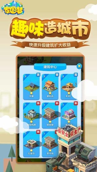 2、有趣的城市建设,建造各种受欢迎的建筑,升级建筑以增加收益。