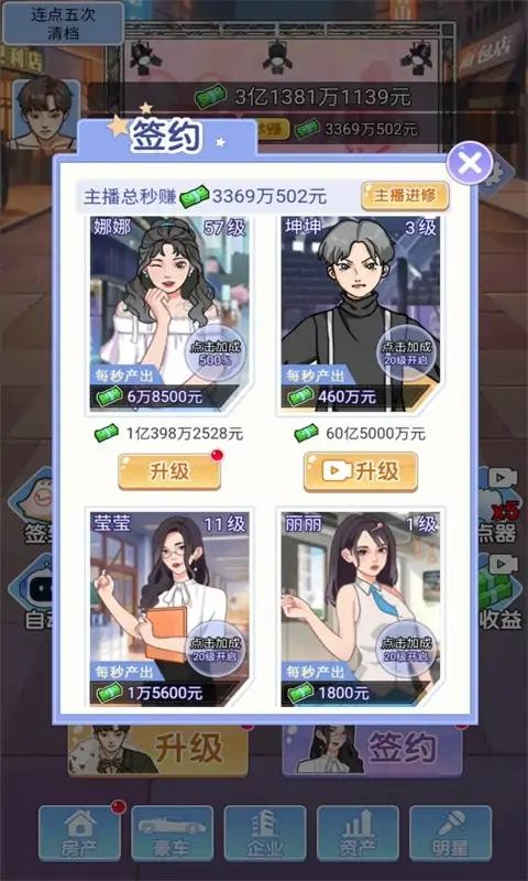 4、提供多样化的升级系统,包括公司设施、明星培训、宣传策划等,玩家可以全面提升自己的明星经济公司。