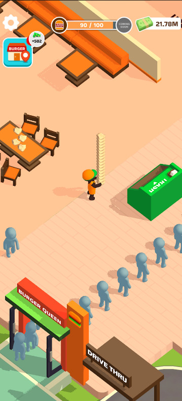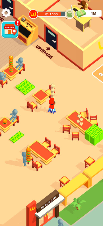 - 升级设备,如汉堡制造机、电梯,以加快速度;