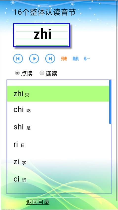 - 根据拼音软件手指提示,依次点击指读区域进行汉语拼音点读学习。