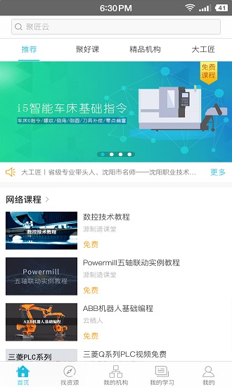 聚匠云app是一个高端技术人员的培训服务软件,是聚焦制造行业,深度挖掘来自院校、企业和个人的行业知识与实践经验,提供由专业团队精心研发的优质学习资源,打造制造业互联网学习平台,分享制造智慧,助力高技能人才成长。